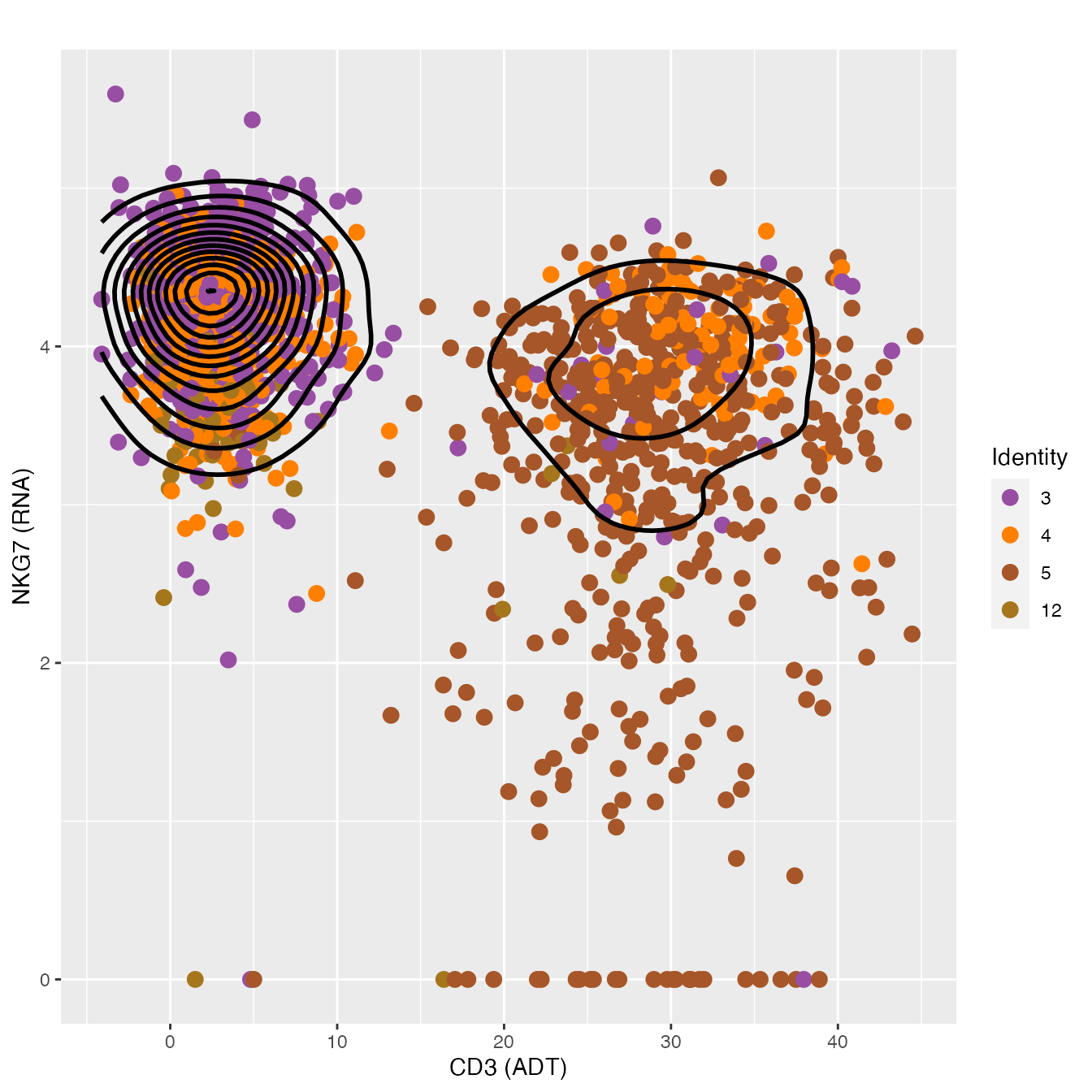 colnames(d) <- c("NKG7", "adt_CD3", "colors")